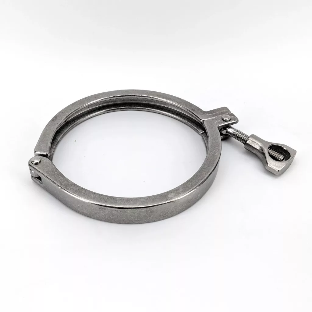 Jedná se o 4palcovou svorku Tri-Clover, která je kompatibilní s většinou standardních 4palcových armatur Tri-Clover.
