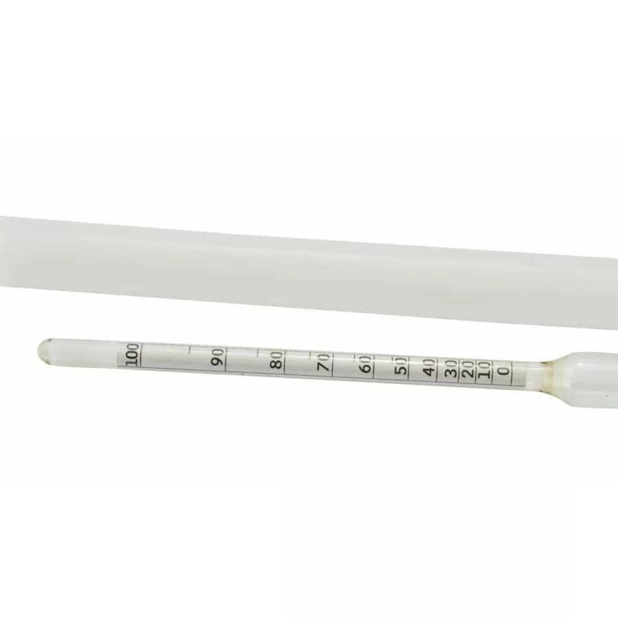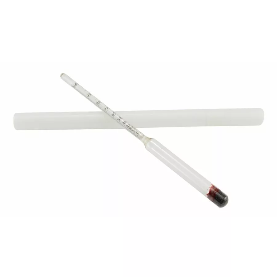 Alkoholmetr slouží ke stanovení obsahu alkoholu v destilátu. Stupnice: 0–100 % v/v Balení obsahuje plastový úložný válec, který pomáhá při bezpečném skladování a udržování čistoty alkoholmetru. Neobsahuje měřicí válec, ten si můžete dokoupit samostatně.