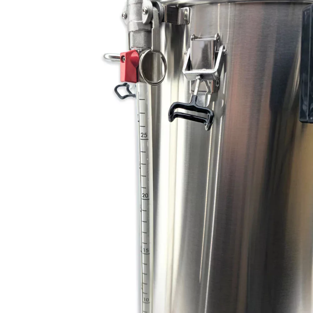 Tento nový design koše na slad je o 30 % větší, což znamená, že se do něj vejde více sladu, a proto můžete vařit více piva nebo piva s vyšším obsahem alkoholu. Nový koš na slad je vybaven dvoustupňovým nastavením výšky, takže zvedá trubku na slad napůl a napůl ji nasazuje na podpěrný kroužek. To zvyšuje ergonomii, takže těžkou trubku na slad lze zvednout ve dvou krocích, ale další výhodou je, že se pivovar lépe hodí i pro menší dávky, kde je výhodnější zvednout trubku na slad jen napůl.