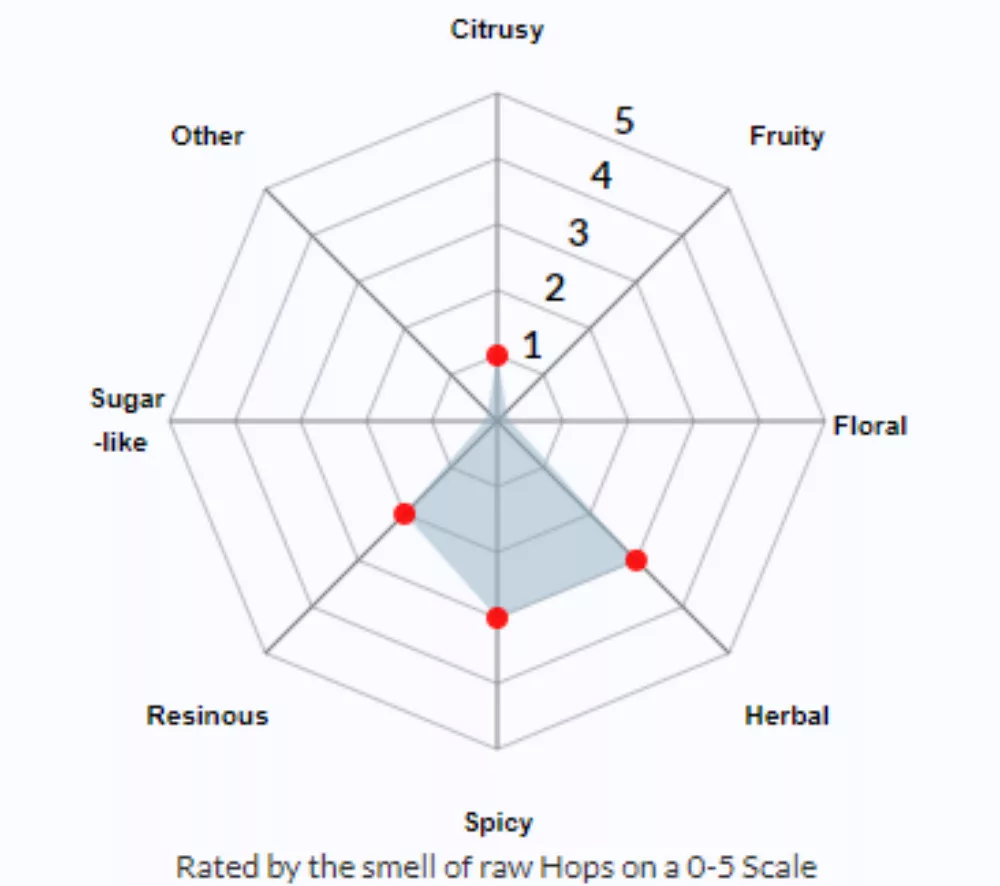 Alfa-kyselina6.5-9%Beta-kyselina3.2-4.5%Co-humolon20-25%Obsah oleje1.0-1.7 %