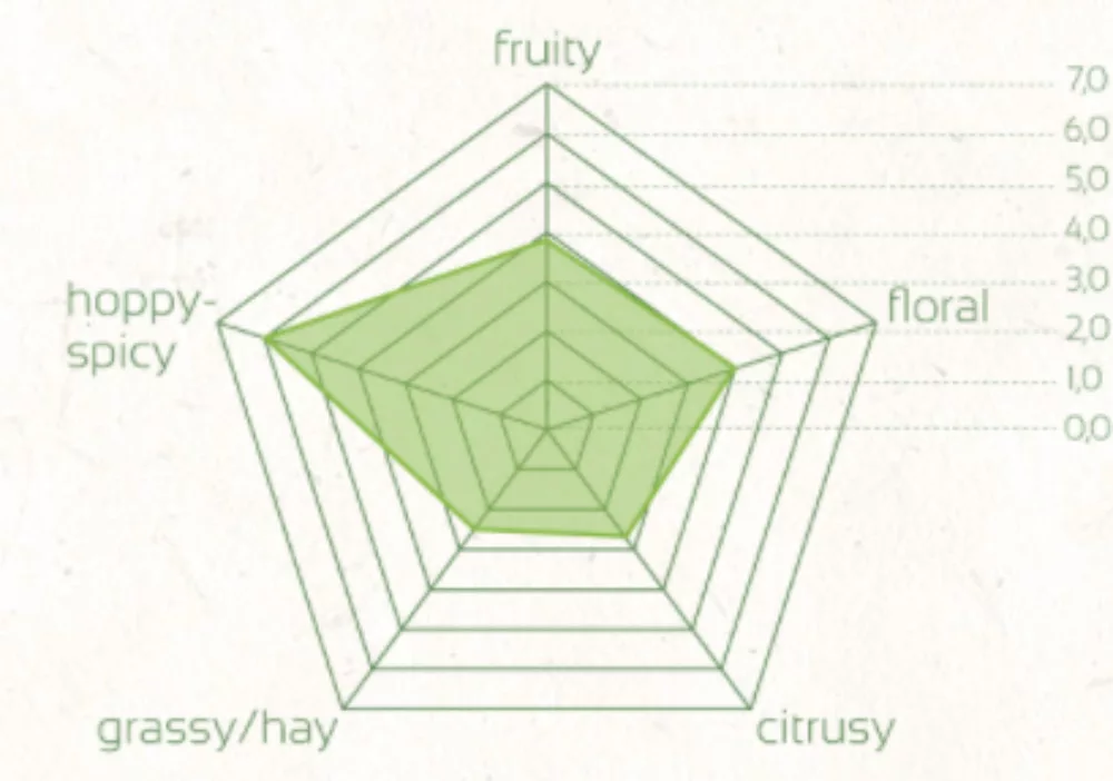 Alfa-kyselina 2-5 % Beta-kyselina4-6 % Co-humolon19-25 % Obsah oleje0.5-1.3 %