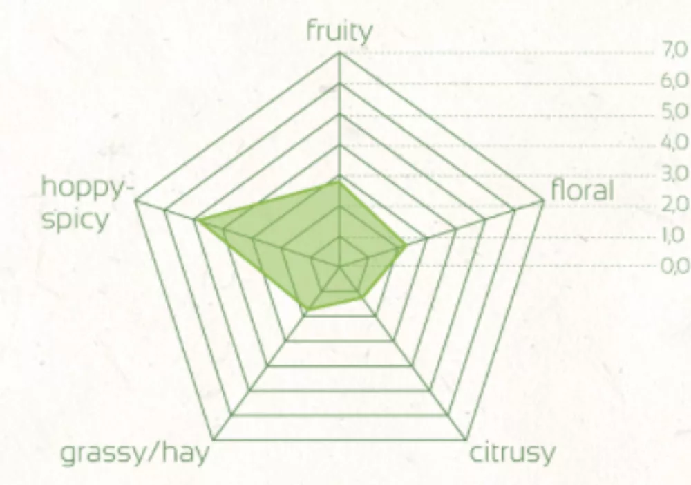 Alfa-kyselina 12-17 % Beta-kyselina4-5.5 % Co-humolon32-38 % Obsah oleje1.4-2.4 %