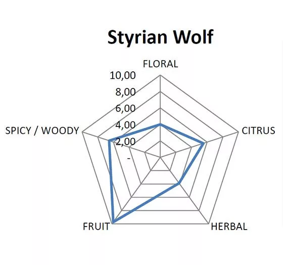 Styrian Wolf, vyvinutý Slovinským institutem pro výzkum chmele a pivovarnictví, je jedním z nejnovějších štýrských chmelů na trhu. Při vaření piva můžete očekávat intenzivní ovocné a květinové tóny. Patří sem chutě sladkých tropických plodů, stejně jako komplexní aroma manga, bezových květů a špetky fialky.