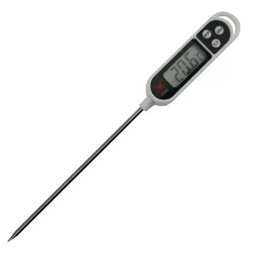 Praktický digitální teploměr s kyselinovzdornou sondou. Hodí se k vaření piva, ale velmi dobře poslouží i jako teploměr na maso při grilování. Baterie potřebná k provozu je součástí balení!