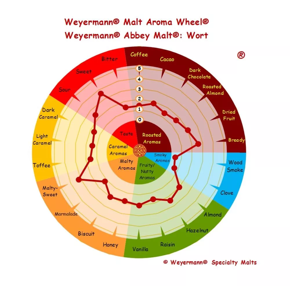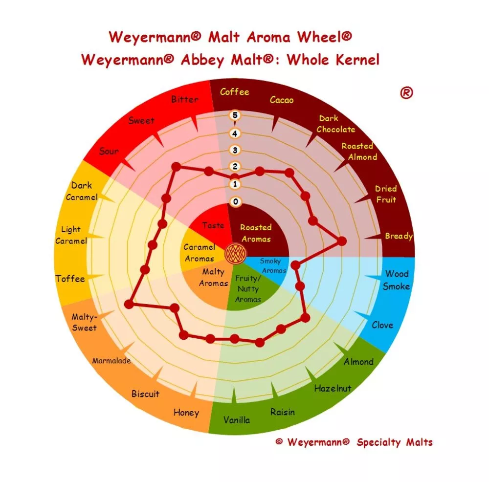 Slad weyermann® Abbey® je vyroben z nejkvalitnější ječmene. Díky speciálnímu postupu získáváme křupavý slad s komplexním aromatickým profilem. V závislosti na dávkování dodává pivu zlatavě měděnou barvu. Mezi jeho aromatické tóny patří: sušenky, med, ořechy a čokoláda.