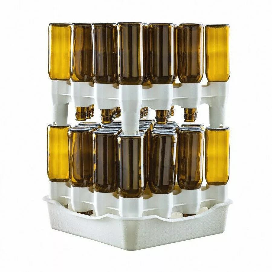 Lahve leží na boku, hrdlem dolů. Hrdlo lahve se ničeho nedotýká, čímž se minimalizuje riziko kontaminace. Sada je vhodná pro skladování 50 lahví.