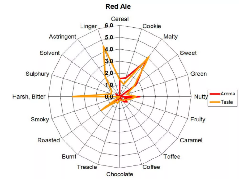 Chuť je plná, mírně hořká, s ořechovými a praženými tóny a dlouhým dozvukem. Enzymová aktivita je nízká, kyselost mírně znatelná. Viking Red Ale má vynikající barvicí schopnost, takže je ideální pro speciální piva typu APA, IPA, Red Ale nebo tmavší ležáky.