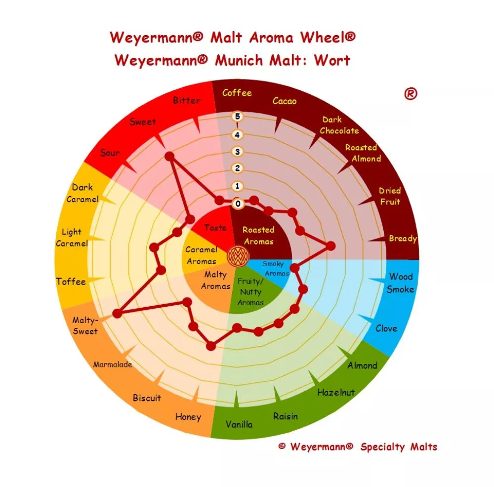 Slad Weyermann® Munich II. je vyroben z vysoce kvalitních surovin. Má bohatou sladovou vůni a je vynikající volbou pro sladová piva tmavší barvy. Chuť je sladová, s tóny karamelu, medu a chleba.