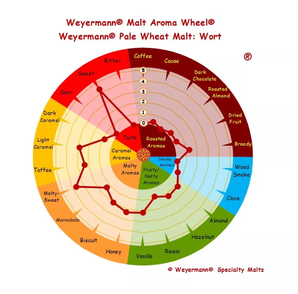 Pšeničný slad weyermann® je vyroben z surovin nejvyšší kvality. Je vynikajícím základním sladem pro světlá pšeničná piva. Vyznačuje se komplexní vůní: najdeme v něm tóny chleba, ořechů, sušenek, mléčného karamelu a karamelu.